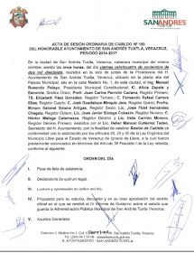 Acta del Acuerdo del cabildo de San Andrés Tuxtla para la fecha del IV Informe