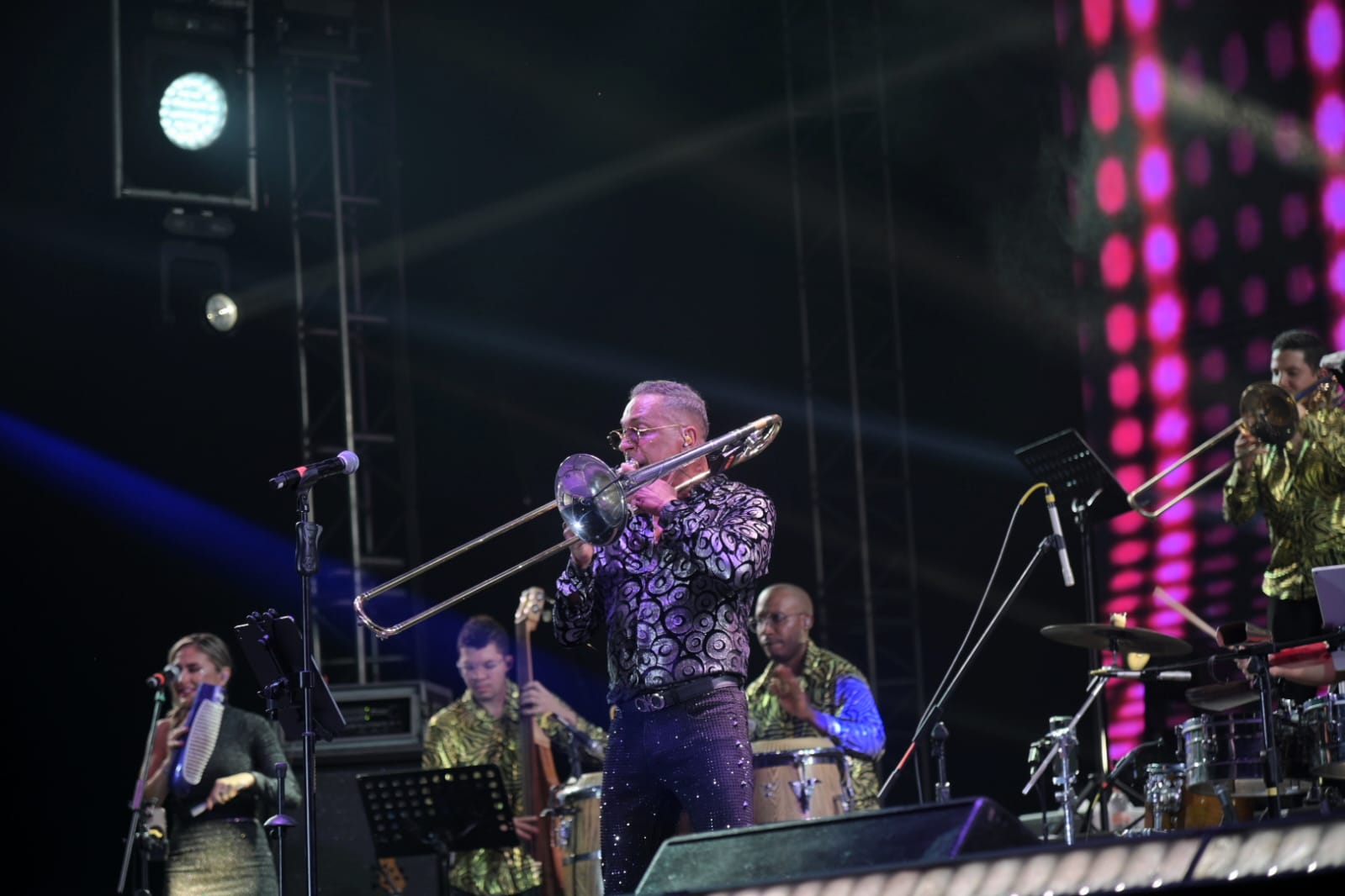 Al término del recorrido, con un lleno total se vivió el segundo concierto de esta celebración en el estadio municipal “Álvaro Lorenzo Fernández”, con la espectacular presentación del “Titán de la Salsa” Alberto Barros, y su Tributo a la Salsa Colombiana